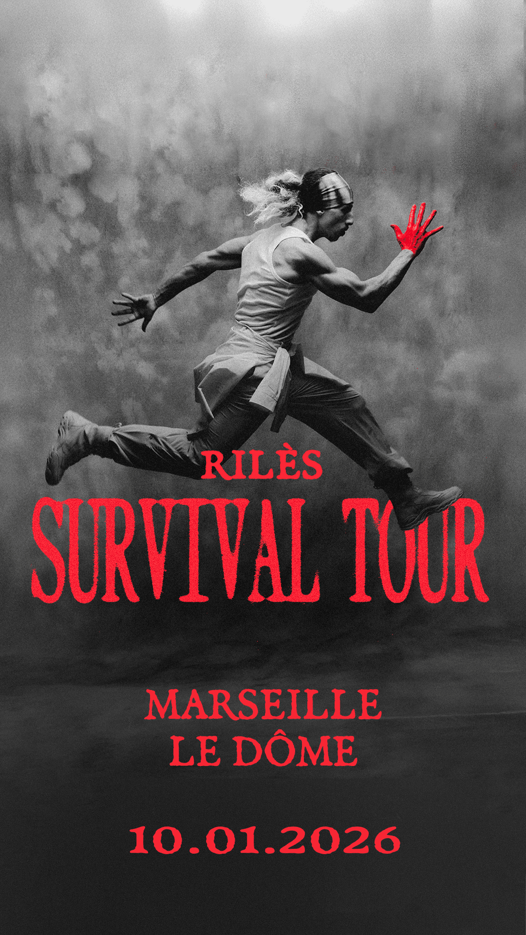Rilès, phénomène autodidacte et artiste complet, revient sur scène avec son nouvel album Survival Mode. Après avoir rempli les Zéniths en 2019 et marqué les esprits avec son défi mondialement suivi du Survival Run (22M de vues en 24h), il entame une nouvelle tournée explosive. Entre énergie brute, discipline folle et une vision artistique unique, Rilès promet un show intense et inoubliable.